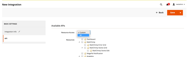 Select "All" to grant full access (or choose specific resources that the integration should have access to).